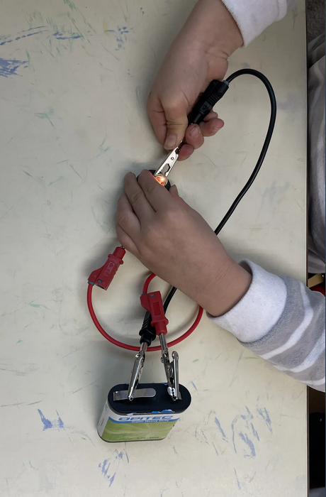 Les élèves ont appris à utiliser les piles, les fils électriques, les pinces crocodiles.